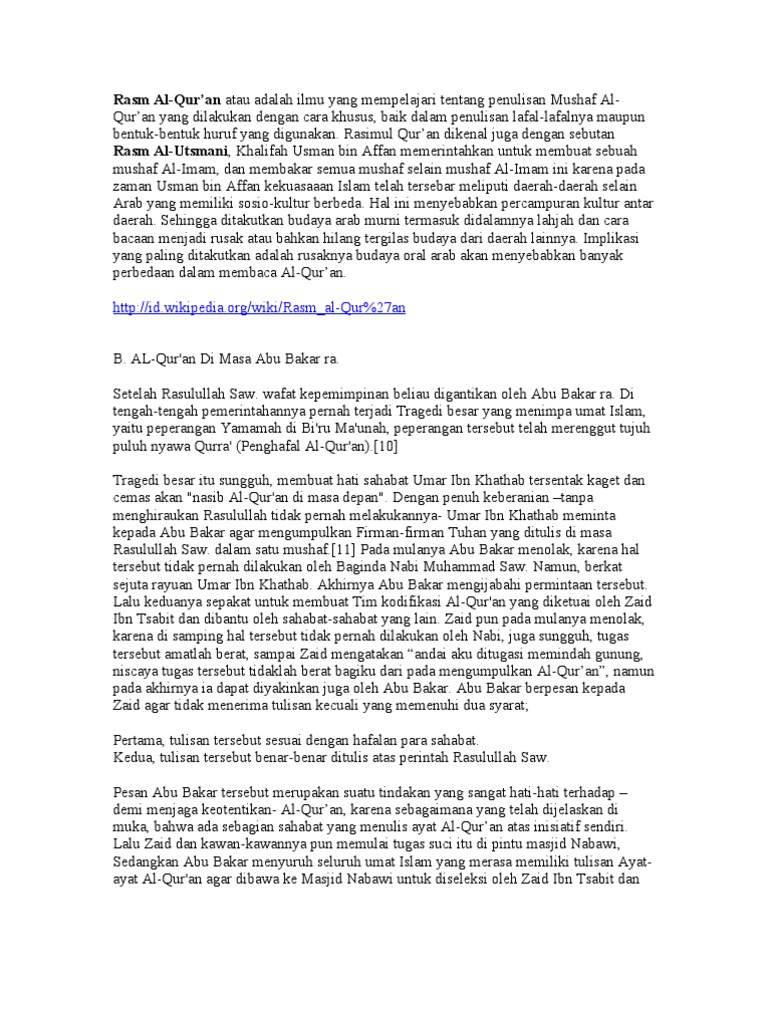Clearly this translation is well spoken of by orthodox. Select quran text style and type. Berbarengan dengan penyebaran, utsman memerintahkan umat islam untuk. Namun demikian pengertian rasm ini terbatas pada mushaf oleh tim 4 di zaman utsman dan tidak mencakup rasm abu bakar pada zaman nabi saw. The uthmani script is similar to the style of the first.