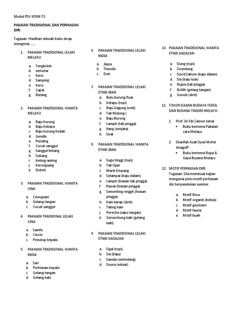 Tajuk 1 pakaian tradisional dan perhiasan diri psv kssm t3 7minuteschallenge readnreviewpsvkssm.