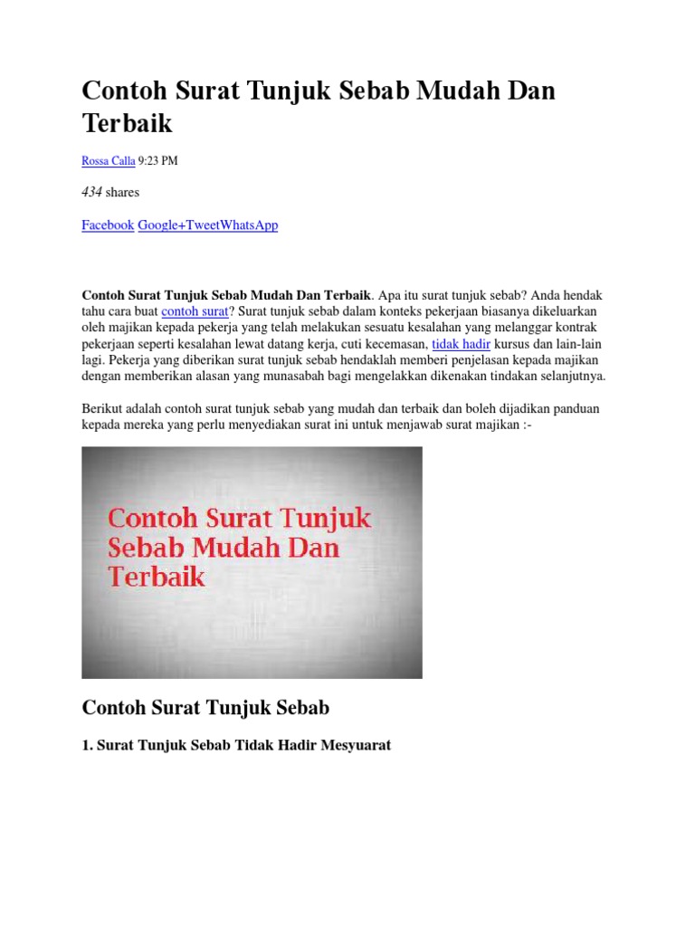 Format surat tunjuk sebab lewat hadir kerja. Merujuk kepada perkara di atas, saya khairul azmi bin mat suod tidak hadir ke mesyuarat yang diadakan pada 6 julai 2018 yang lepas. Tuan, tunjuk sebab tidak dapat menghadiri kursus anjuran jpns sukacitadimaklumkanbahawasayasepertinama di atasinginmerujukkepadasurat yang. Selain menjalankan solat 5 waktu, saat bulan ramadhan kamu disunahkan menjalan sholat tarawih. Surat tunjuk sebab ketidakhadiran kerjadengan hormatnya merujuk kepada perkara di atas.